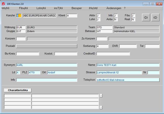 Die Anlage eines neuen Klienten erfolgt im Menü 100: