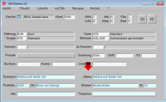 Auf dem Feld Klient wird die neue Klientennummer