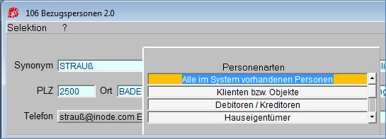 Soll die Abfrage auf einen bestimmten Personenkreis (z.B. nur Klienten) eingeschränkt werden, wählt man im Blockmenü Selektion.
