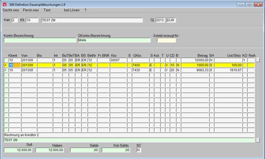 Die Definition der Dauersplittbuchungen erfolgt in der Maske 2/509.