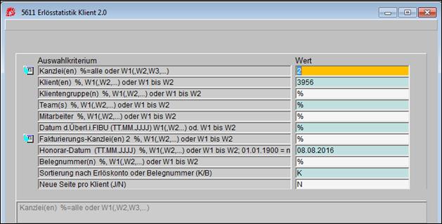 Mit dem Band 102,1 wurde die Maske um den Parameter Mitarbeiter erweitert.