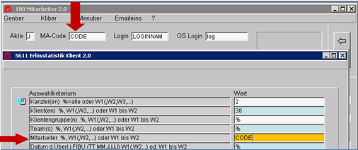 Einschränkung auf den Mitarbeitercode der Maske 1/180.