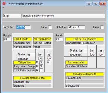 Um einen Honorarkopf für die 1. Seite zu definieren oder neu zu erstellen, drücken Sie auf diesem Feld die Taste F4. Eine detaillierte Anleitung zum Erstellen des Kopfes finden Sie unter Punkt 3.2.8.1. |