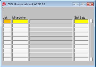 In der Maske 5922 können Sie Honorarsätze laut WTBO (Wirtschaftstreuhänder-Berufsordnung) erfassen.