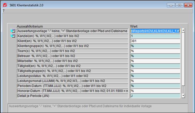 Setzen Sie den Parameter auf J, so wird zusätzlich innerhalb der Tätigkeit je eine Zeile pro Periode angedruckt. | |
