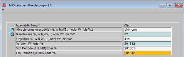 Hier können Sie vorhandene Abrechnungswerte löschen. Dieser Menüpunkt gilt für alle Abrechnungsarten – OB, BN, HE, HM: