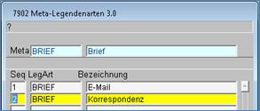 In der Maske 7902 Meta-Legendenarten wird die Erzeugung von Legenden mit Aktivitäten durch die Eingabe einer einzelnen, so genannten Meta-Legende definiert.
