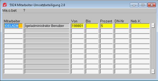 Über diese Maske können Sie Ihre Mitarbeiter an deren geleisteten Umsätzen beteiligen.