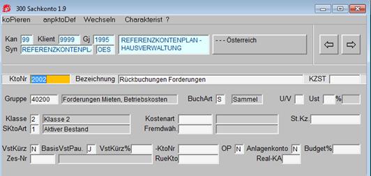 Als Rückbuchungskonto legen Sie z.B. das Konto 2002 Rückbuchungen Forderungen mit denselben Einstellungen wie das Konto 2000 an.