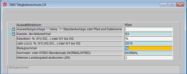 Dies ist der Text aus der Maske 400 Leistungserfassung. Mit Hilfe des letzten Parameters (Internen Leistungstext andrucken J/N) in der Maske 5503 können Sie diesen Leistungstext auch unterdrücken. |