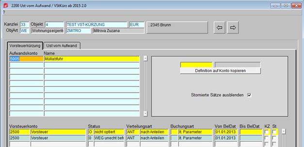 Gleichzeitig wird die Maske 10/2200 (Ust vom Aufwand / VST Kürzung ab 2015) neu angelegt.